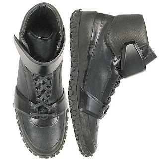 This fab! Balenciaga leather tab high top Sneakers is part of their ss09 collection. Love the tab details both the laced part and the velcro would have loved the sole design to be a bit more subtle, looks like its fighting for attention with the leather tabs :o]